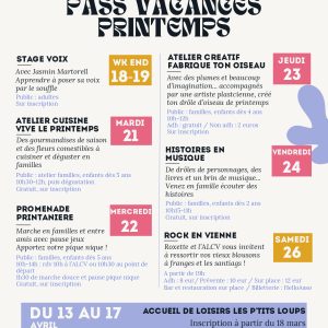 10h00 - 14h00Promenade printanièreMarche en familles et entre amis avec pause jeux Apportez votre pique nique ! Public […]