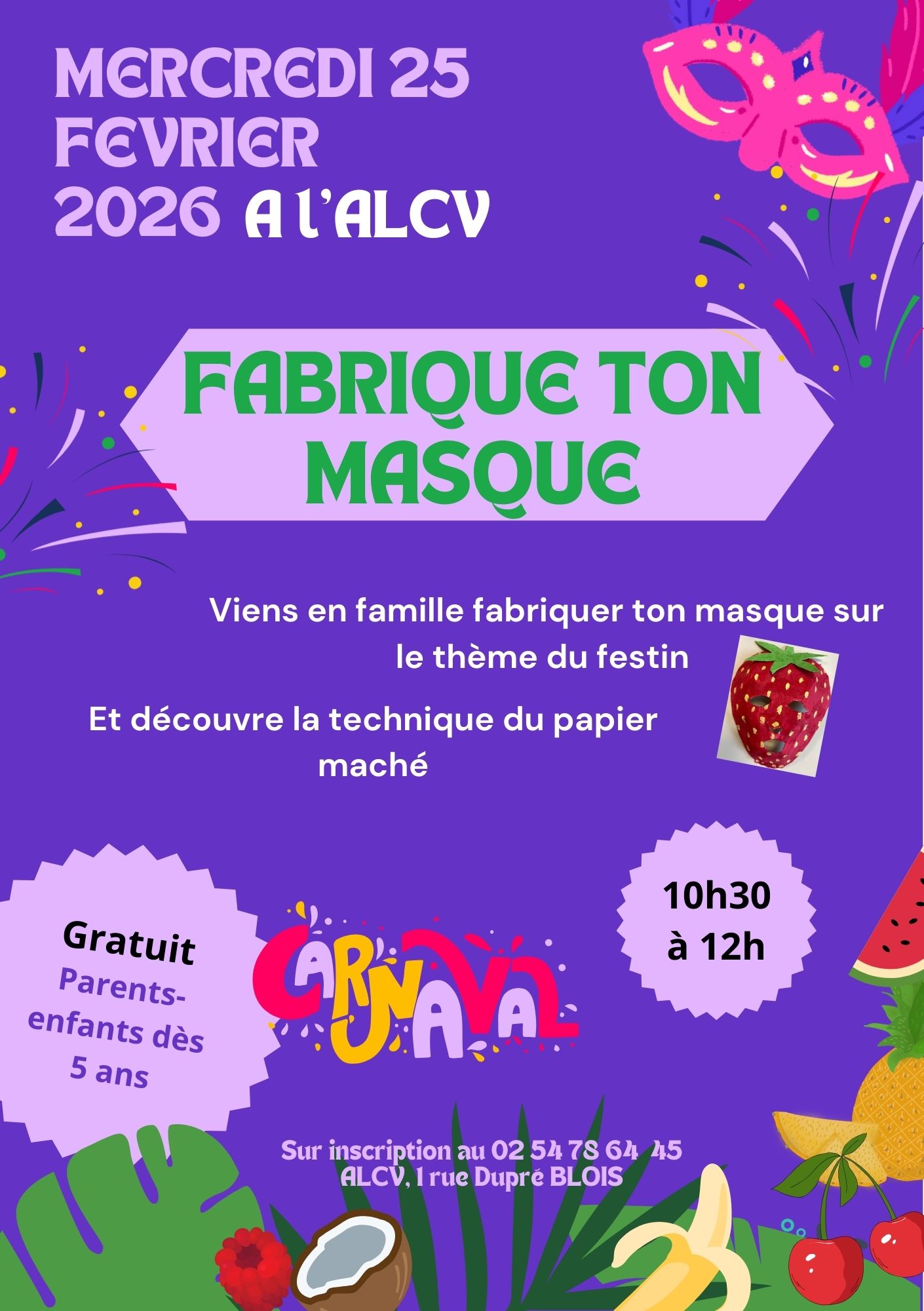 Rechercher Articles récents Mario et Cathy FARINA Emy Sauvaget Ambroise Crêche Etienne Pouvreau Charles Rousselet Commentaires récentsArchives juillet 2021 avril 2021 mars 2021 février 2021 Catégories Festhéa Pôles activités Portrait Méta Connexion Flux des publications Flux des commentaires Site de WordPress-FR Date Fév 25 2026 Expiré! Heure 8h00 - 18h00 Création masques Venez créer vos propore masque à l’approche de carnaval et découvrir la méthode du papier maché Partagez cet événement